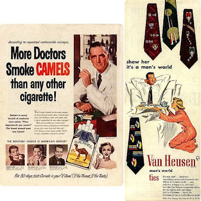 "Mais médicos fumam Camels do que qualquer outro cigarro" "Mostre a ela que este é o mundo dos homens"