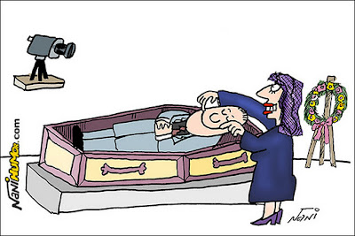 Quando o marido finalmente morreu, a esposa colocou no jornal o anúncio da morte, acrescentando que ele havia morrido de gonorréia.